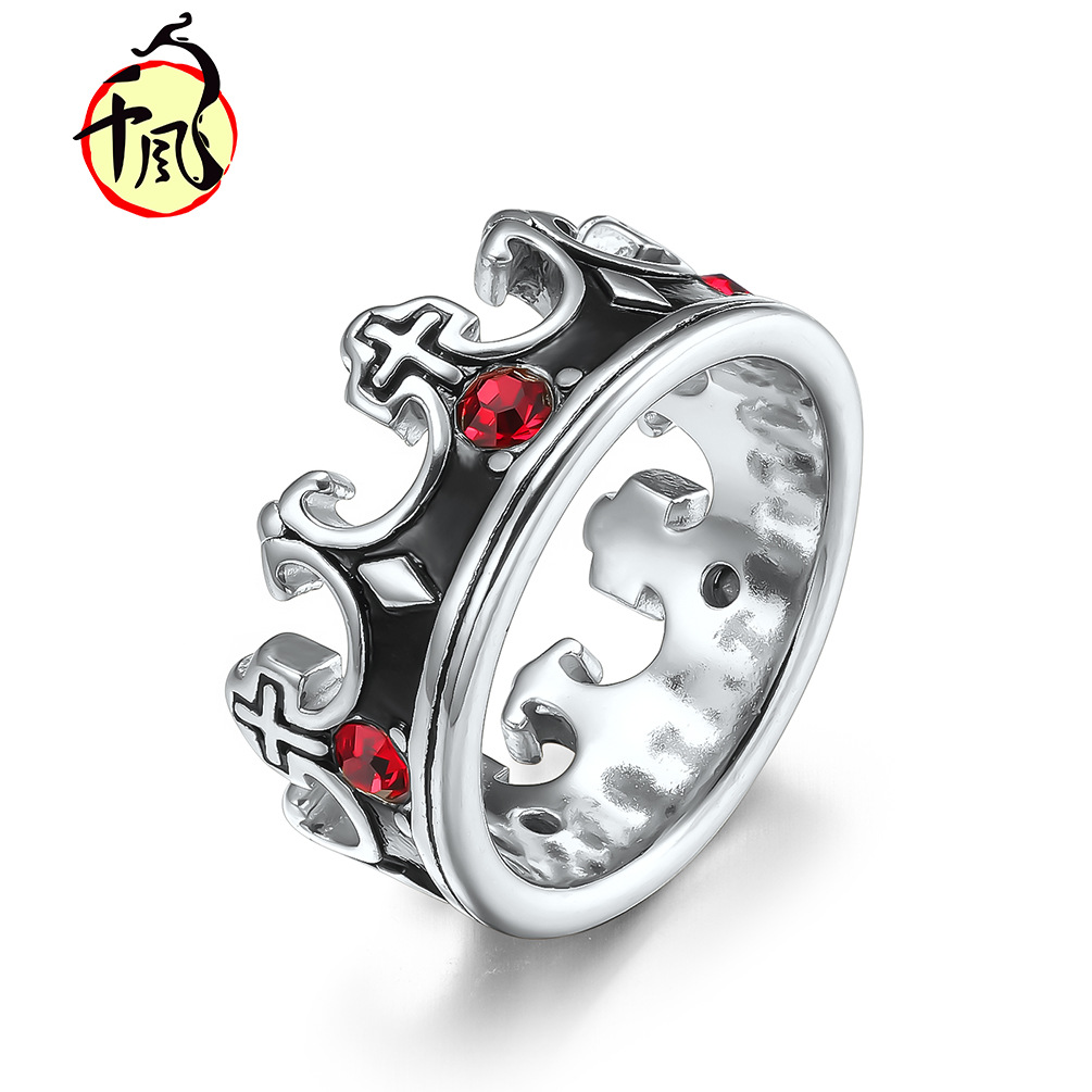 Cross Stainless Steel Crown Diamond Ring Men's Vintage Handwear Off the Shelf
