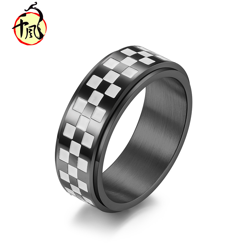 New racing flag go chessboard black and white stainless steel rotary ring decompression jewelry