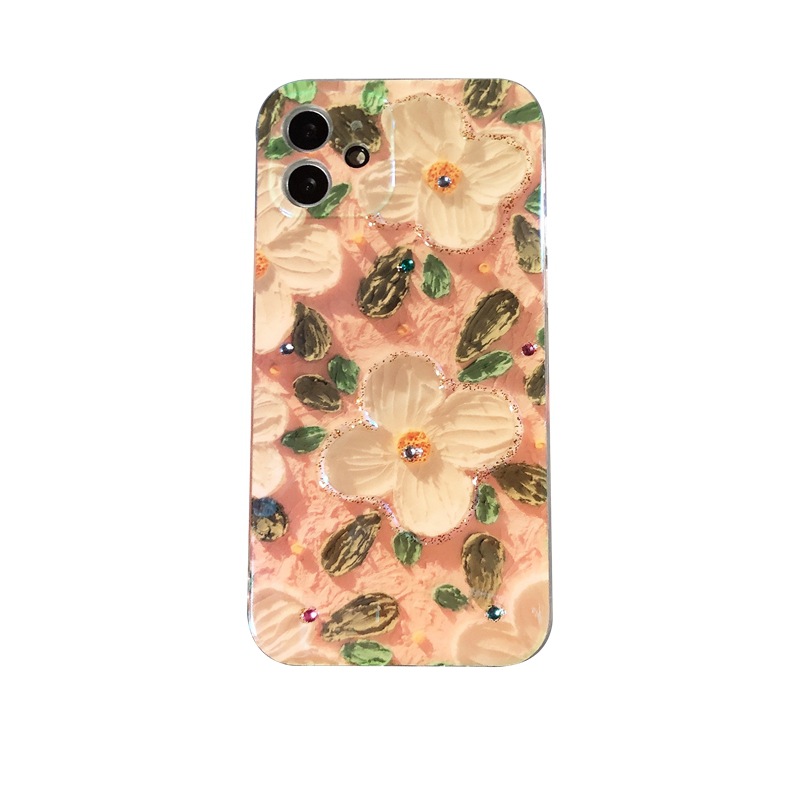油絵粉花はリンゴ13携帯ケースiphone11/12promax日韓78plus新xs/xrを適用している