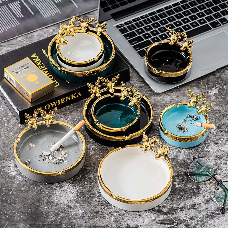 北欧轻奢鹿头烟灰缸批发创意个性潮流网红家用客厅装饰摆件防飞灰