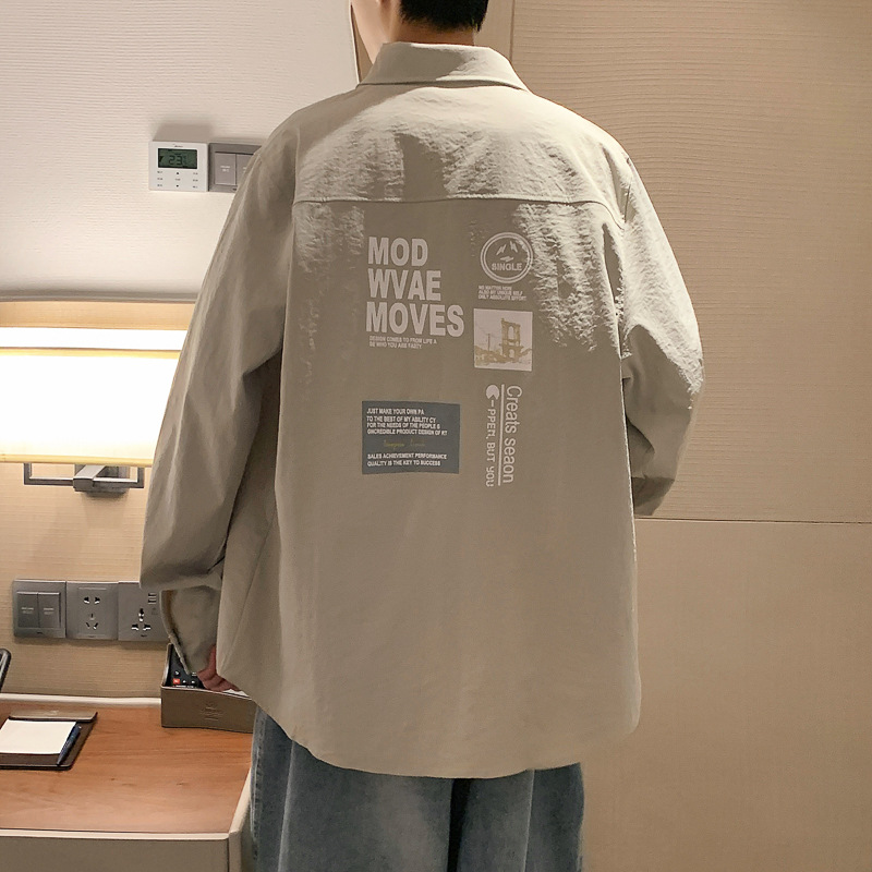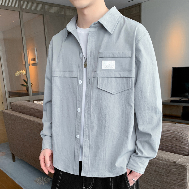 长袖衬衫男士外套青少年工装痞帅气2022春秋新款港风ins潮流上衣