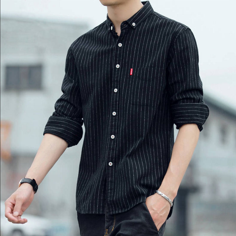 衬衫男长袖2022新款韩版修身中青年条纹男士衬衣秋季休闲潮流外套
