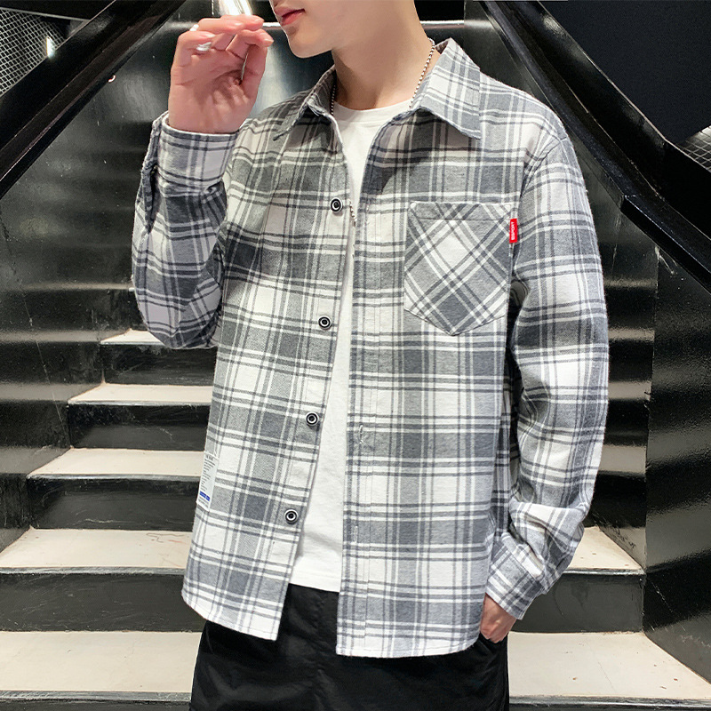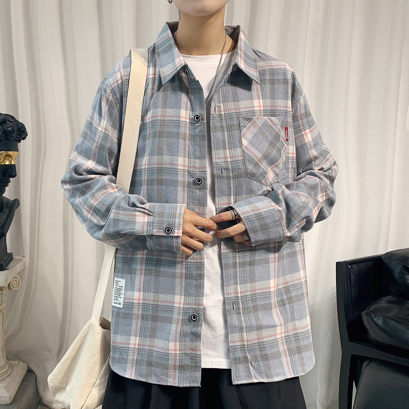 2020春秋新款男士长袖格子衬衫时尚韩版宽松潮流男装外套衬衣批发