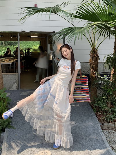 2025春夏 Tシャツ レディースワッフル半袖 韓国風 プリント ショート丈 トップスダブルスポーツミックスストリートおしゃれ系グラフィックラウンドネックスリーブカジュアル大人可愛いスポーティー配色T