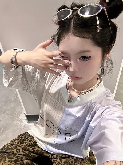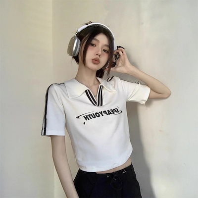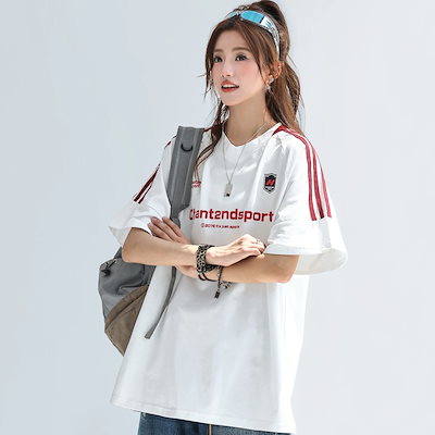 2025春夏 Tシャツ レディース 半袖 韓国風 プリント ショート丈 トップス スポーツミックスストリートフィット感おしゃれ系グラフィックラウンドネックスリーブカジュアル大人可愛いスポーティー配色T