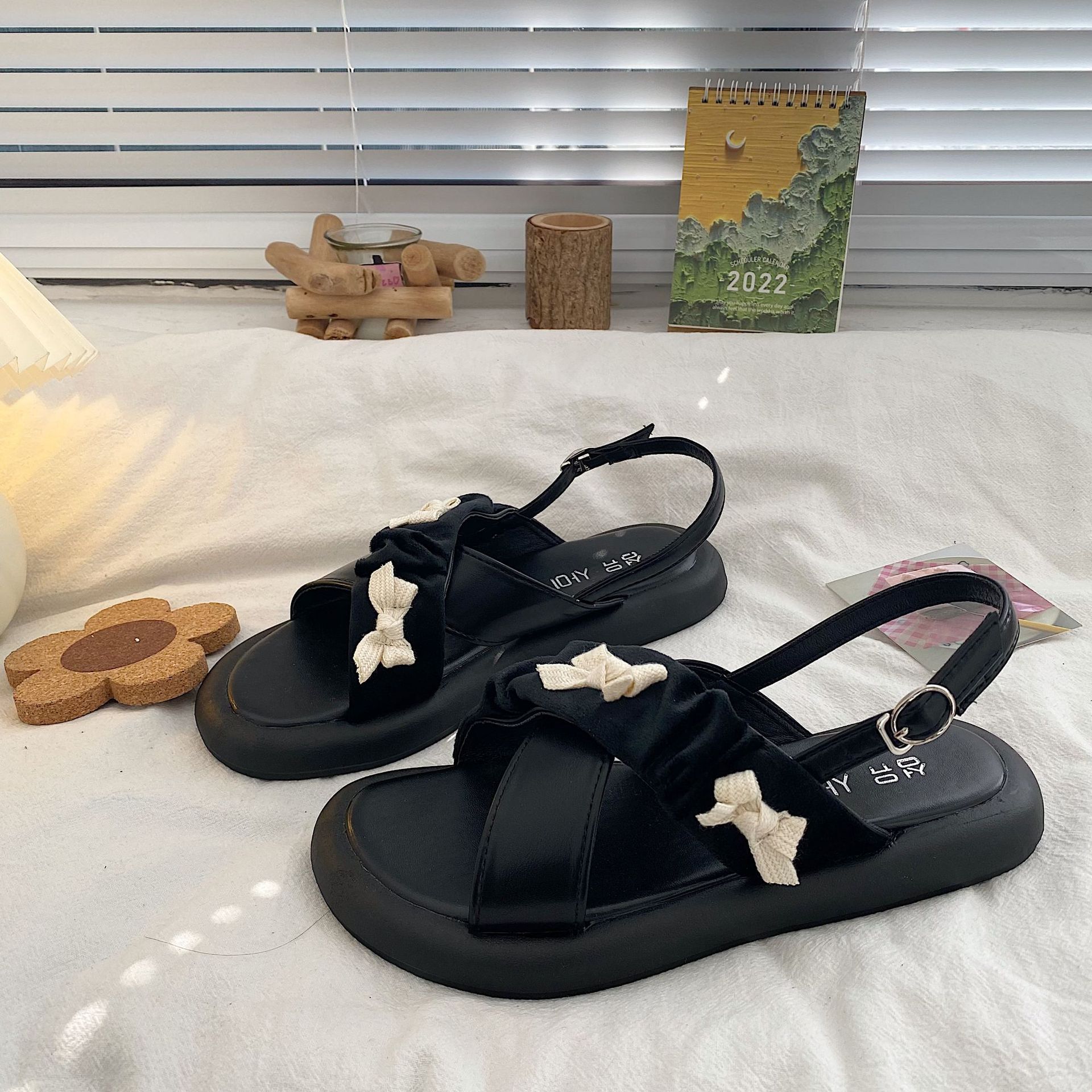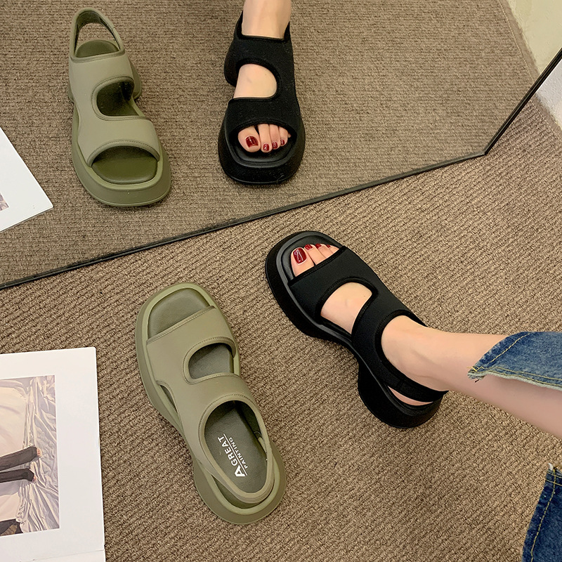 【迦罗亚】厚底凉鞋女2022年仙女风罗马百搭外穿平底增高女鞋
