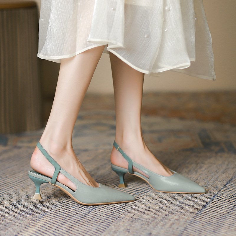 599-3 淑女风简约气质后空凉鞋女职业通勤包头凉鞋尖头细跟单鞋女