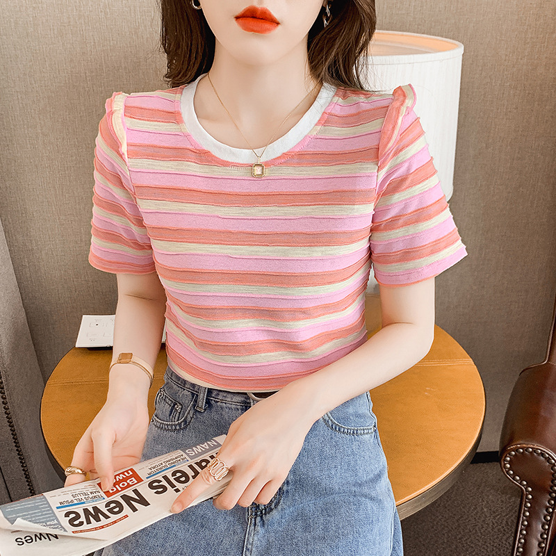 爆款韩版女装条纹短袖T恤女新品时尚夏季服装新款衣服小众上衣女