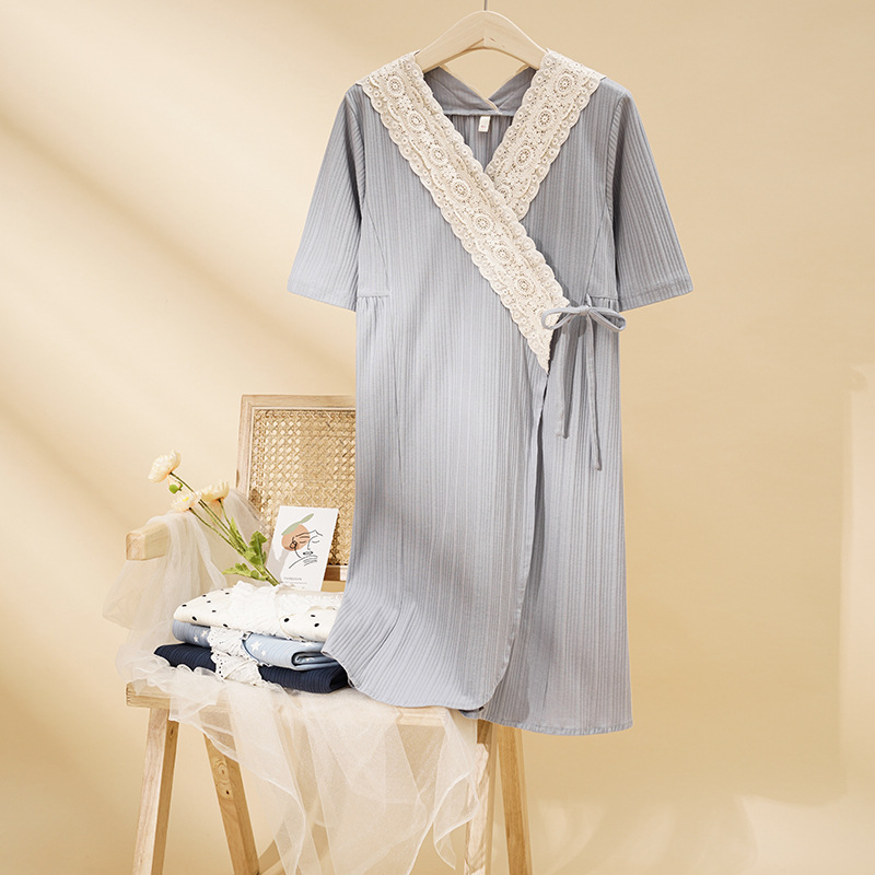夏季睡衣女短袖针织棉和服女士睡袍夏天性感家居服加大码浴袍外贸