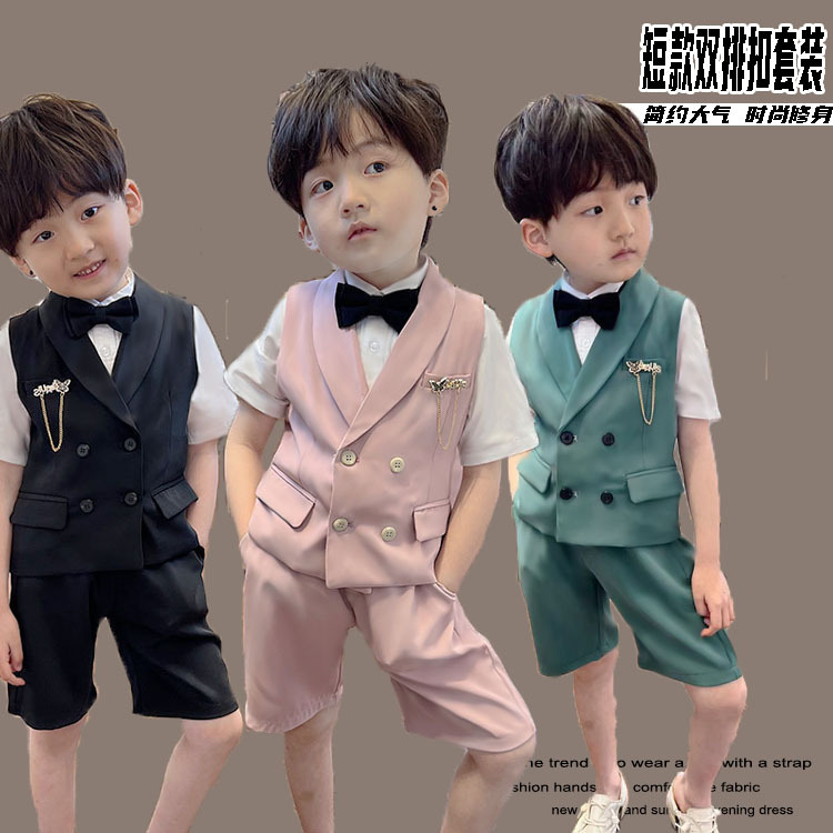儿童礼服背带套装2022夏季新款短袖衬衫短裤花童男童批发一件代发