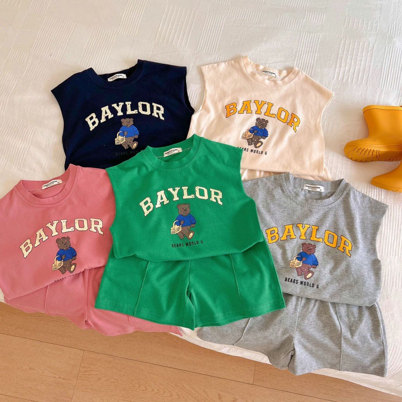 儿童纯棉无袖T套装2022夏季男女童卡通小熊背心宝宝休闲两件套潮