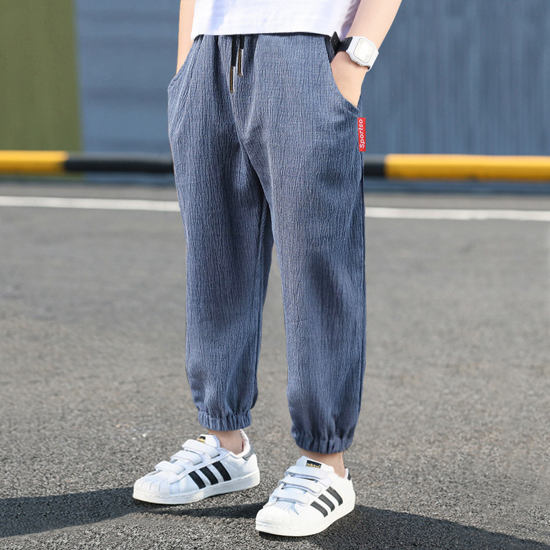 男童裤子夏季薄款儿童九分裤中大童棉麻2022男孩帅气防蚊卫裤韩版