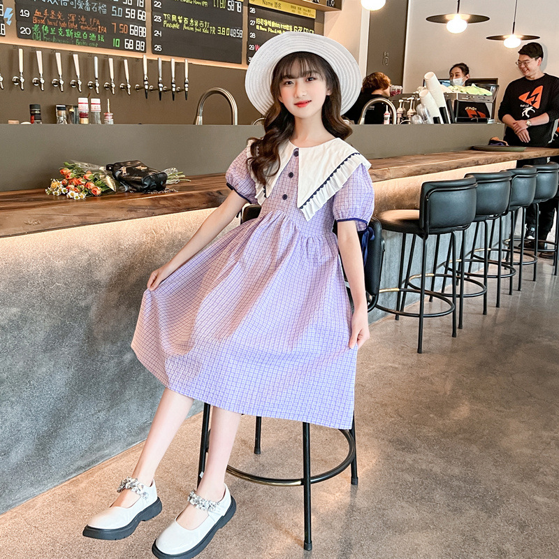 女童连衣裙夏季2022新款洋气时髦儿童夏装公主裙中大童学院风裙子