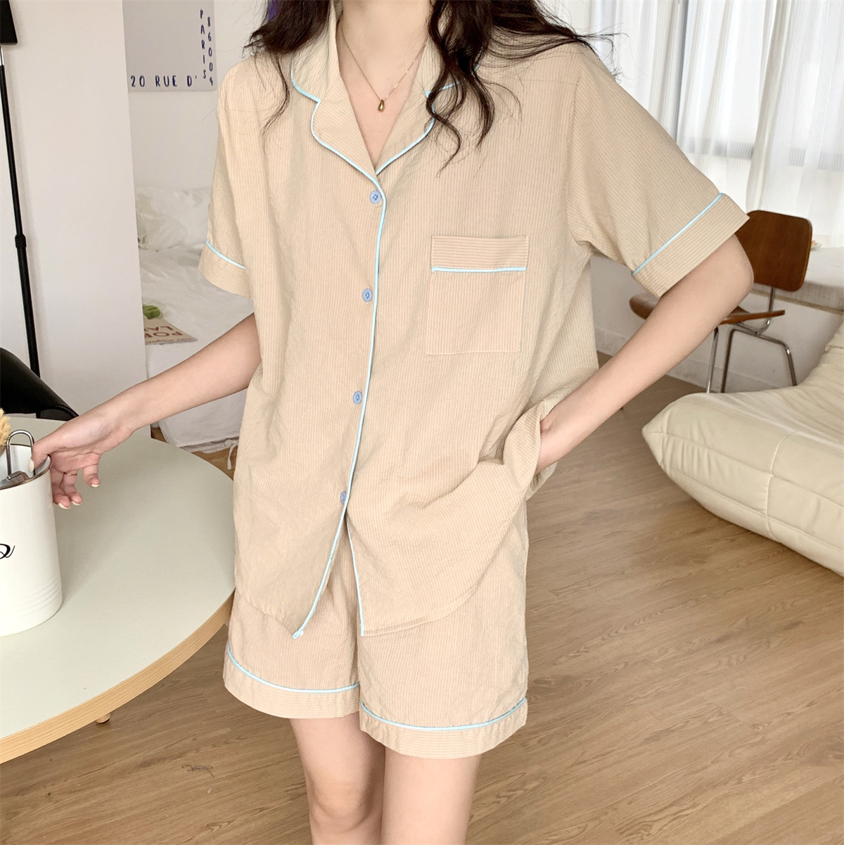 夏季新款短袖睡衣女条纹ins日系可爱简约学生可外穿家居服两件套