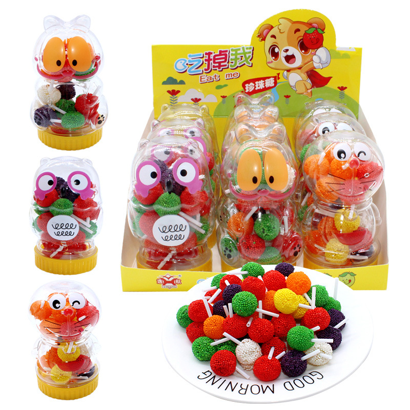 80克迷你棒棒糖可爱卡通造型瓶装糖果多口味果汁软糖儿童怀旧零食