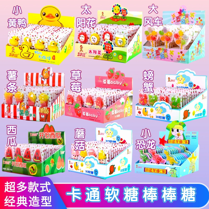 小黄鸭软糖棒棒糖风车糖网红创意西瓜草莓儿童糖果卡通棒棒软糖