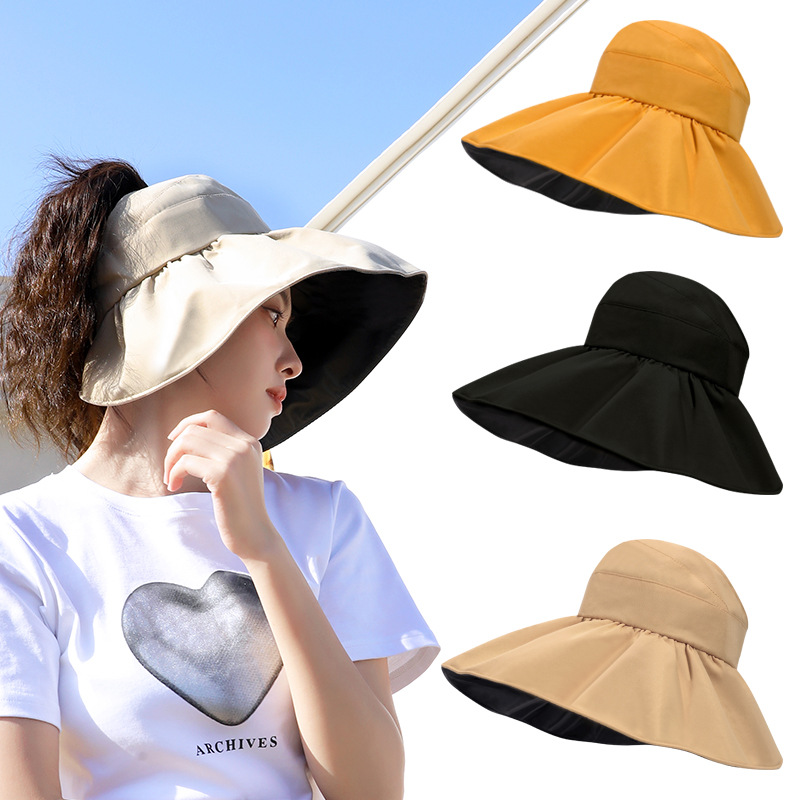 夏季黑胶空顶防晒帽子女夏天大檐防晒遮阳帽可折叠渔夫帽春夏