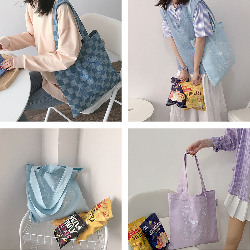 イエ語/日系新型大容量カジュアルバッグ学院風小熊小兎方形シングルショルダーバッグ帆袋婦人バッグ