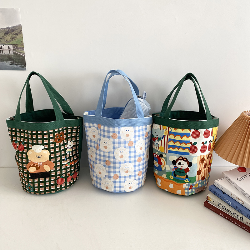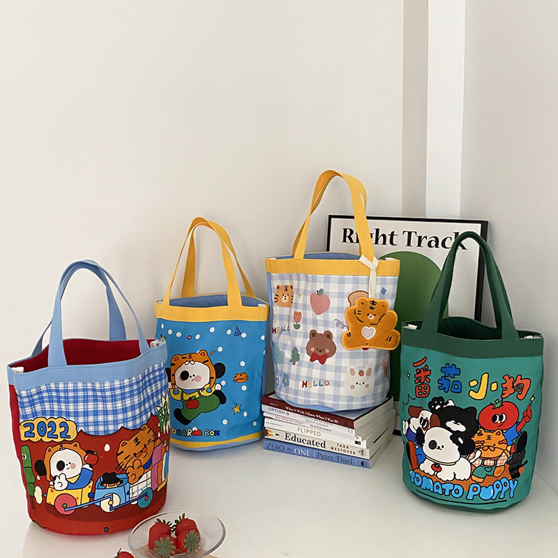 エレ語/カートゥーンプリントの円筒バッグ手提げ帆バッグ韓風乙女心バケツバッグ