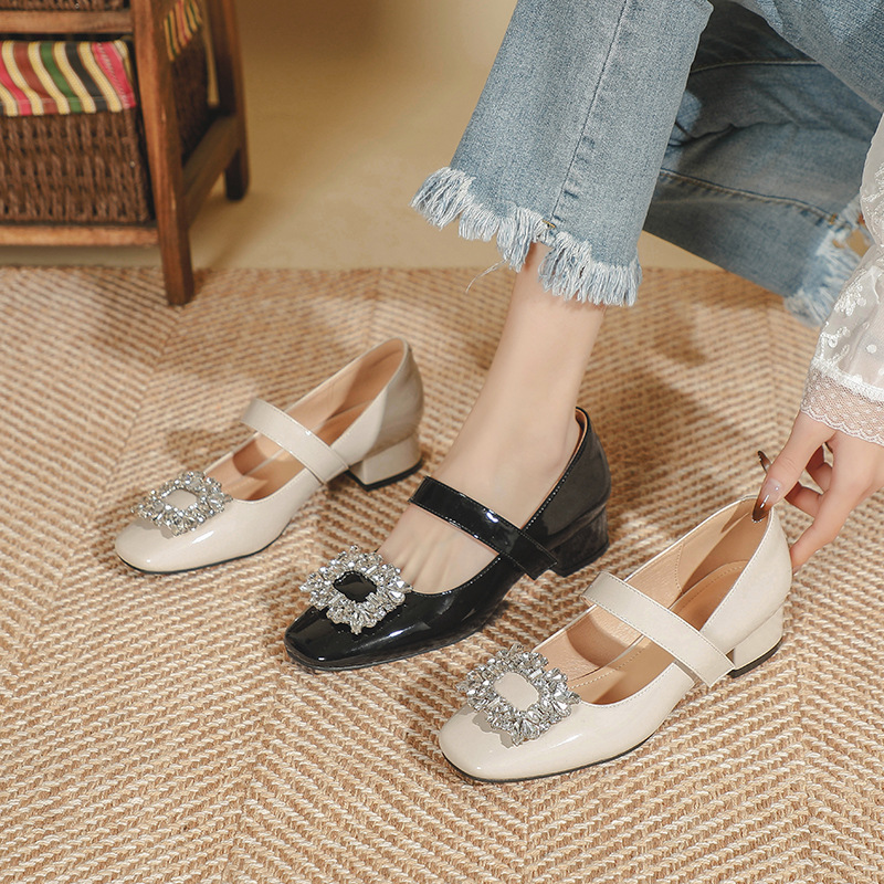 足は広くて足は太って選んでください大きい1ヤードStudiolee同じ款の水のダイヤの単靴の女の春の新型の小さい香の風のメアリーの珍靴低いかかとの浅い口靴