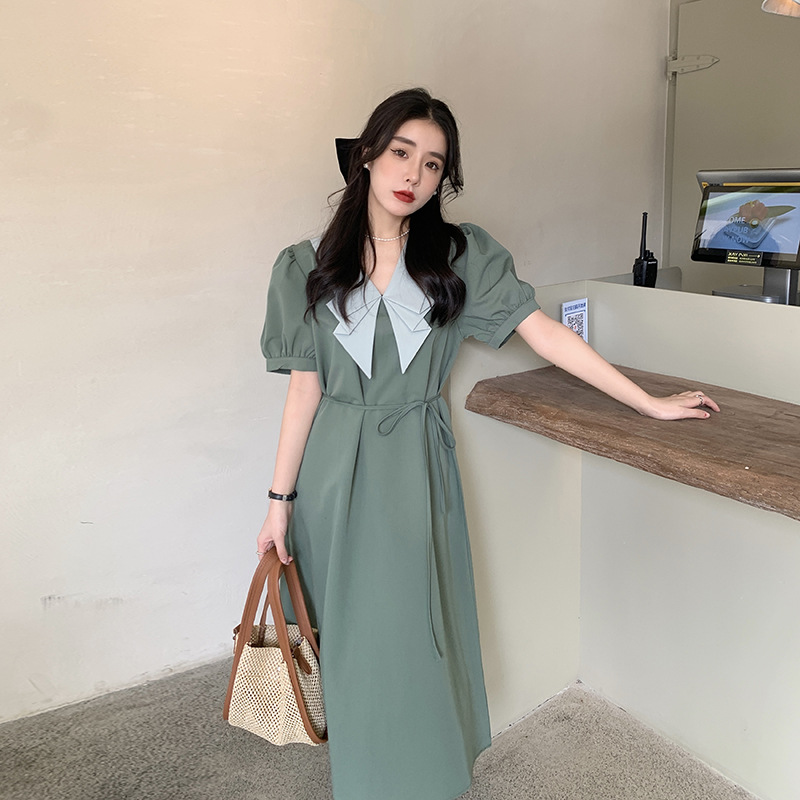 夏季女装批发连衣裙女法式气质蝴蝶结设计感小众收腰长款裙子潮