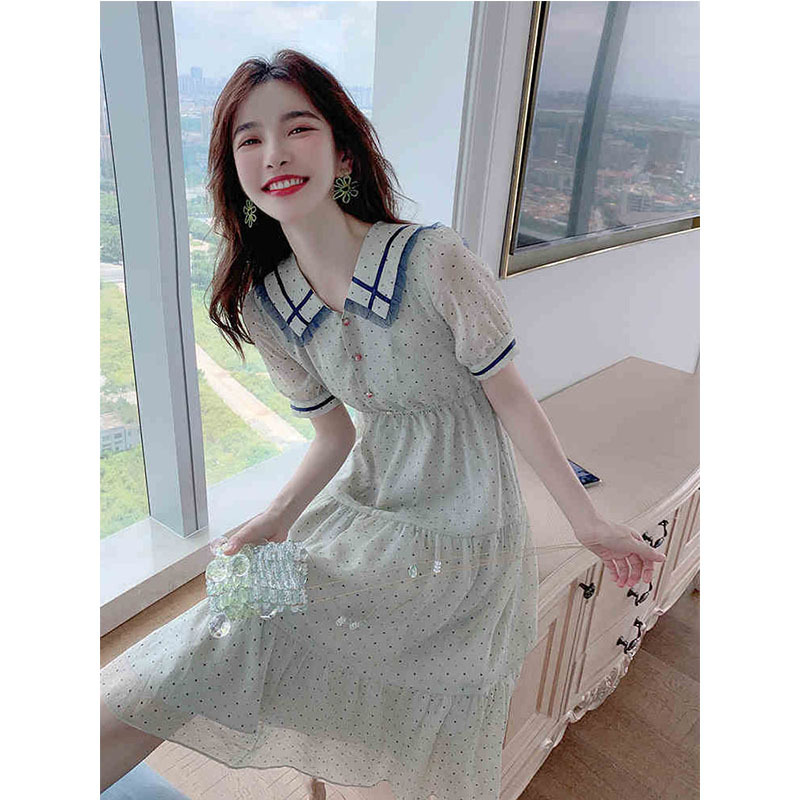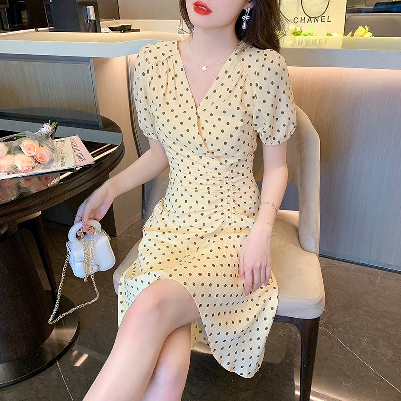 波点雪纺连衣裙女夏装2022新款小个子气质法式轻熟风减龄显瘦裙子