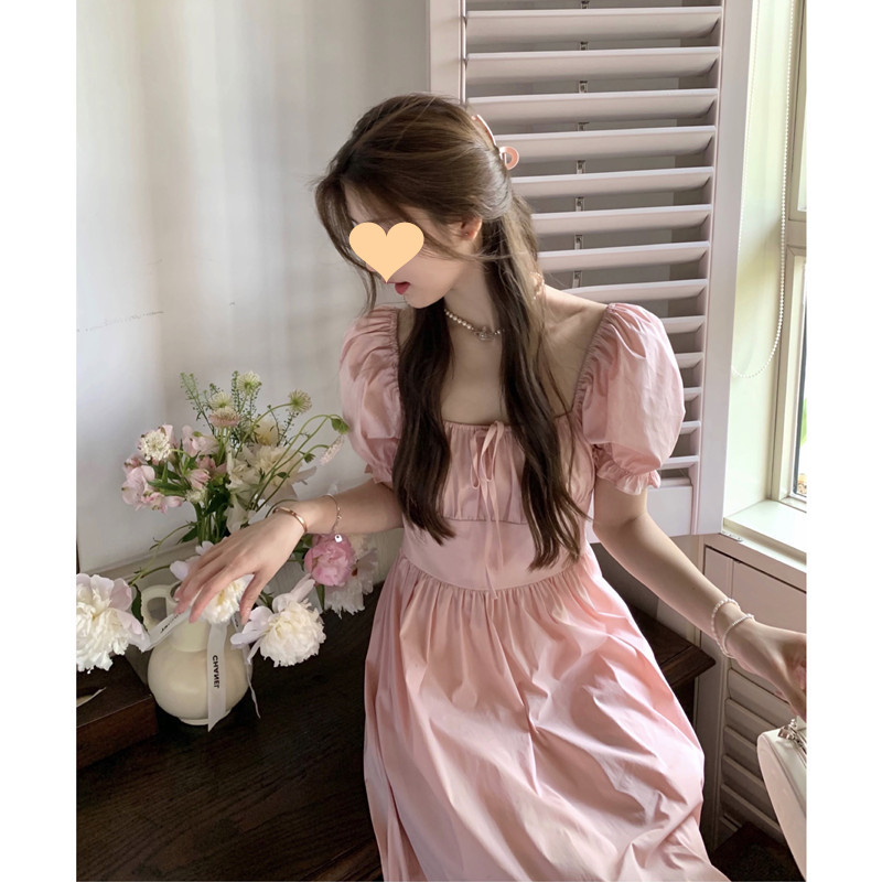 法式初恋连衣裙女2022夏季新款收腰显瘦泡泡袖方领绣花小个子短裙