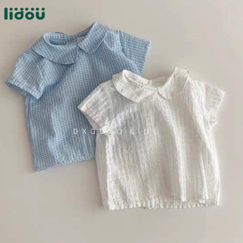 女童衬衫夏季2022新款韩版儿童短袖衬衣女孩洋气娃娃领中小童上衣
