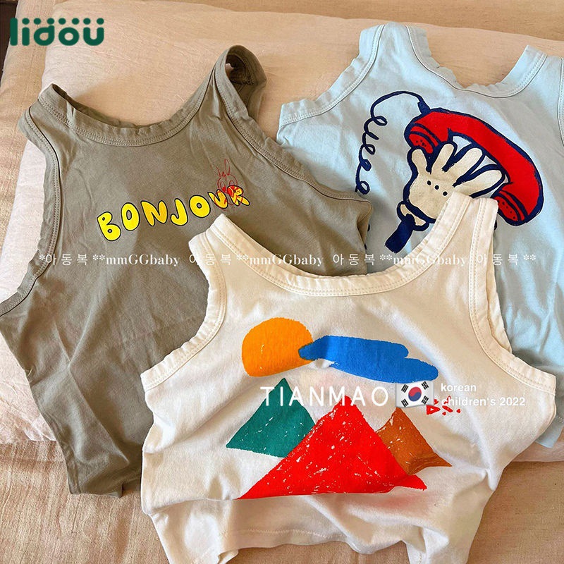 儿童背心2022夏装新款男女童卡通印花纯棉T恤宝宝吊带上衣洋气潮