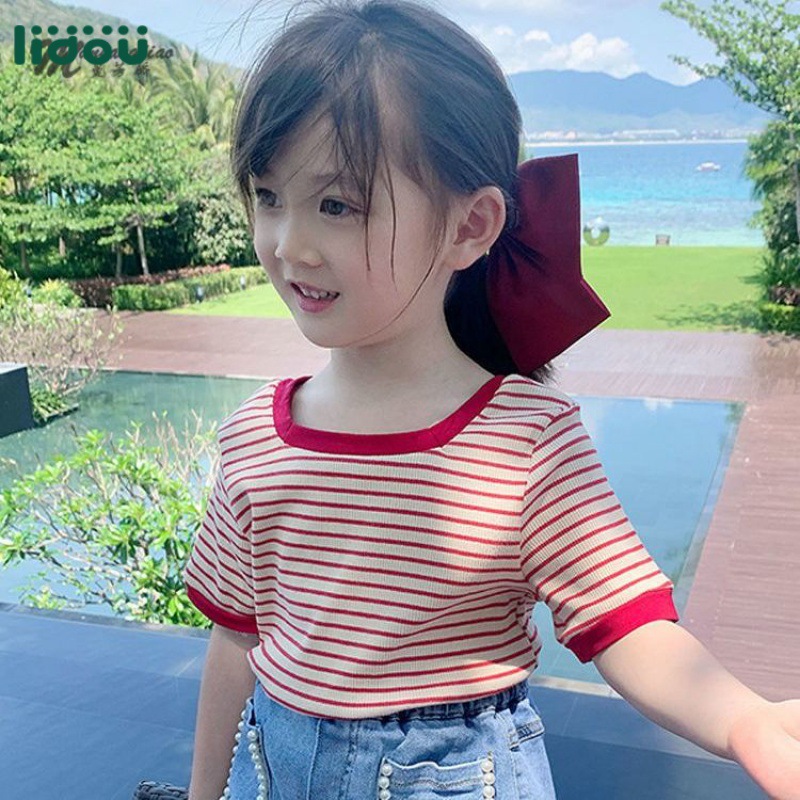 女童短袖T恤2022新款中小儿童夏装宝宝条纹夏季薄款上衣网红童装