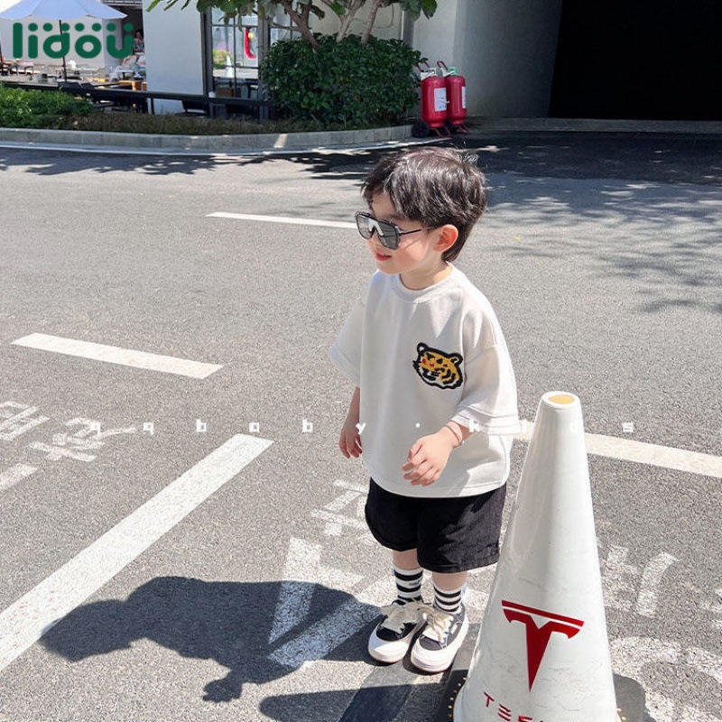 2022夏季新款男童老虎头圆领休闲衫中小童卡通洋气休闲t宽松上衣