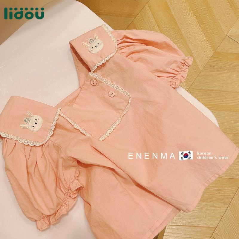 恩妈女童2021夏装新款可爱短袖上衣韩版儿童女宝宝印花泡泡袖衬衫
