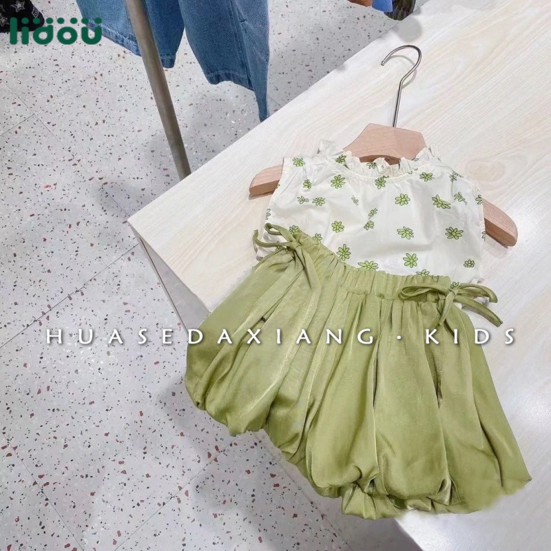 女宝宝洋气套装2022夏装新款韩版女童夏季上衣花苞灯笼短裤两件套