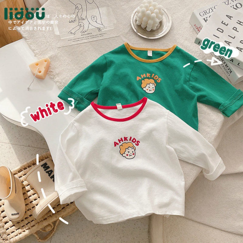童装小童宝宝竹节棉上衣男女儿童韩版撞色T恤短袖2022夏新款半袖