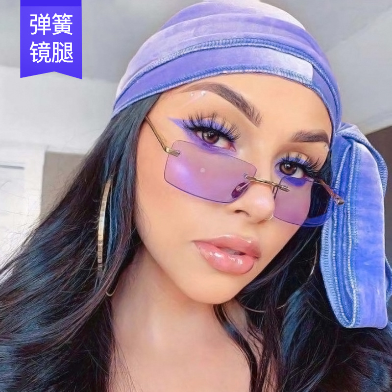 Frameless sunglasses female square small frame ocean sheet spring leg sunglasses ins trend street shooting cross-border glasses