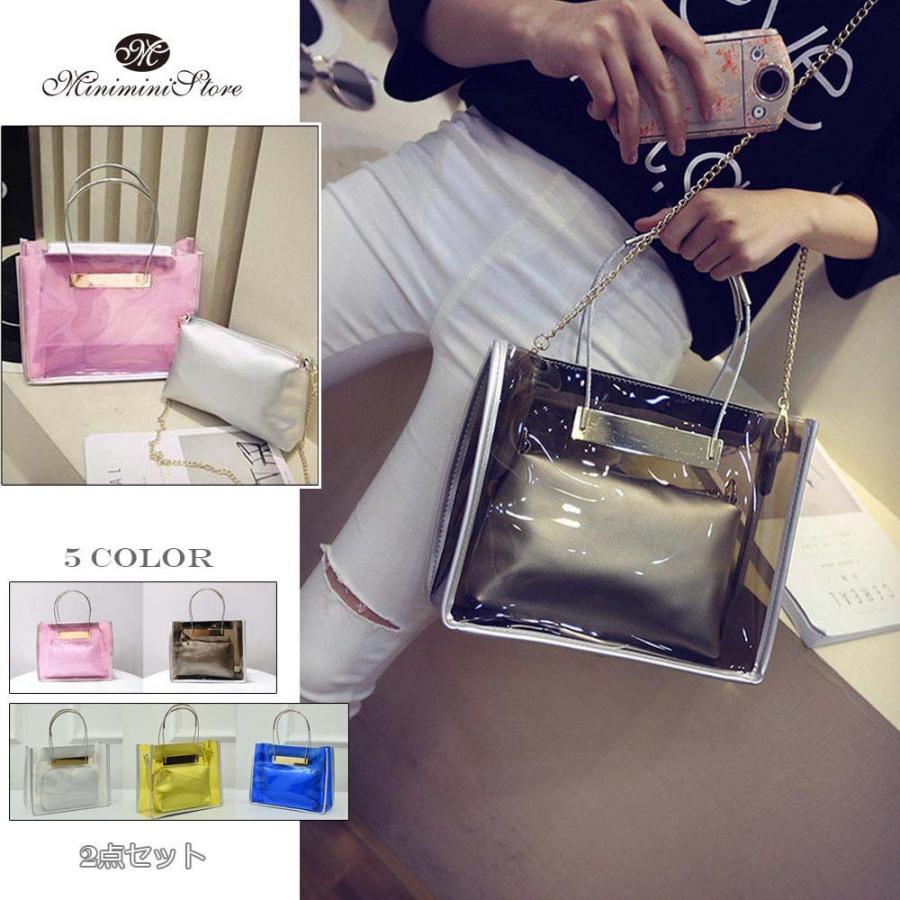 クリアバッグ レディース ショルダーバッグ 斜めがけ 透明 トートバッグ 春夏 PVC