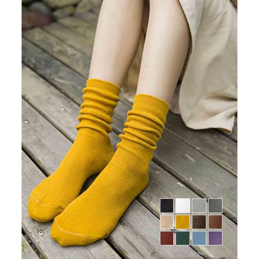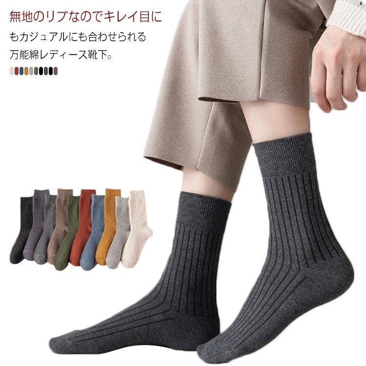 リブソックス レディース ミドル丈 靴下 無地 綿混 ソックス 通学 薄手 カラバリ 靴下【ネコポス可】