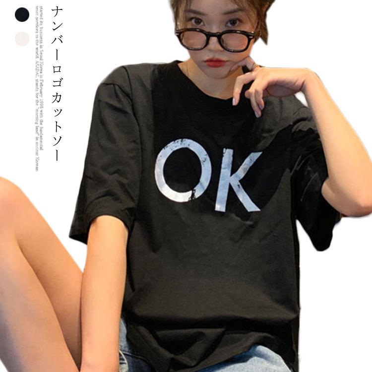 Tシャツ レディース 半袖 カジュアル おしゃれ 大きいサイズ 体型カバー ロゴプリント カットソー トップス 可愛い ワンポイント トップス 送料無