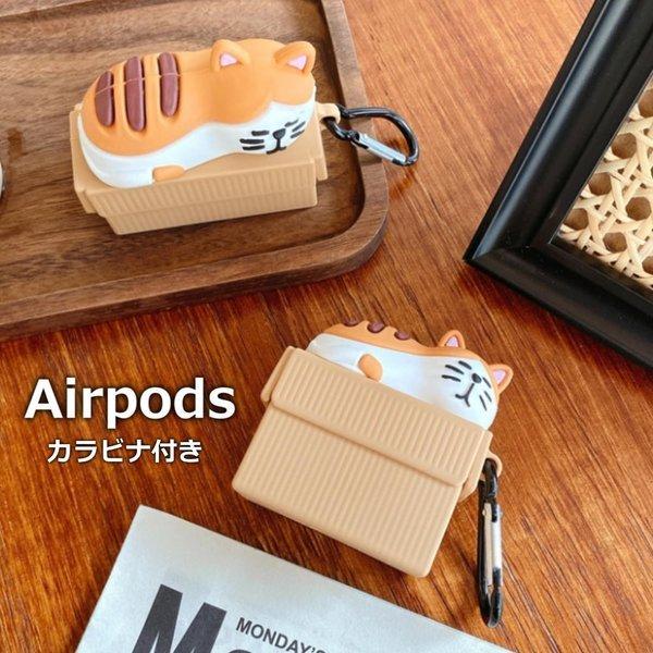 猫 AirPods Proカバー AirPods1 AirPods2 エアポッド エアポッズ ねこ カラビナ 充電ケース イヤホン収納 ワイヤレスイヤホン 香箱すわり 耐衝撃 落下防止