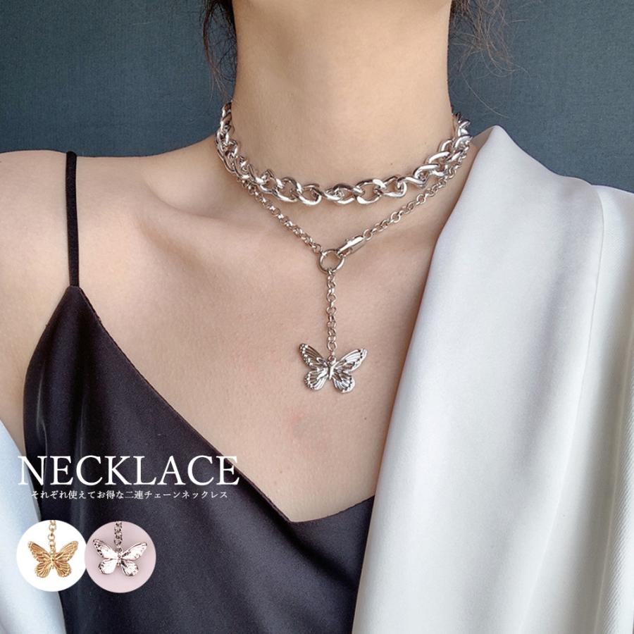 チェーンネックレス レディース 蝶柄2点セット チョーカーネックレス カジュアル 原宿系 アクセサリー 2連 重ね付け【ネコポス可】