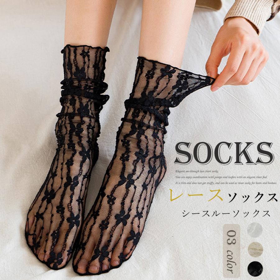 シースルーソックス 花柄レース 女性用【ネコポス可】