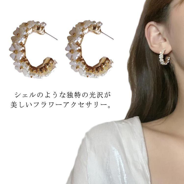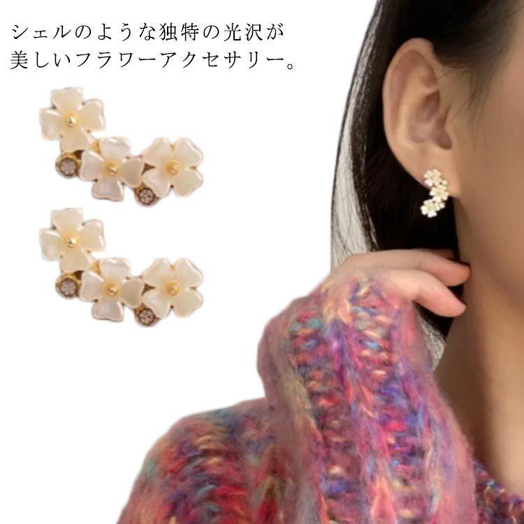 送料無料 トリプルフラワーピアス イヤリング お花 ホワイトフラワー 925シルバー ポスト シェル風 上品 レディース 大人っぽい シンプル かわい