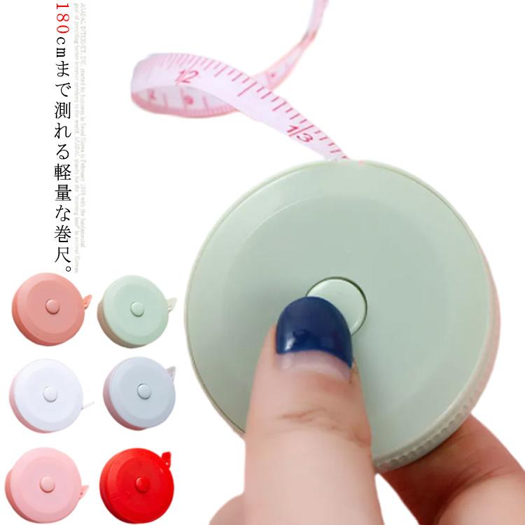 巻尺 メジャー 長さ1.8m 両面目盛 cm インチ テープメジャー ロングメジャー 丸型 自動巻き取り 軽量 コンパクト 採寸 胸囲 ウエスト ヒッ