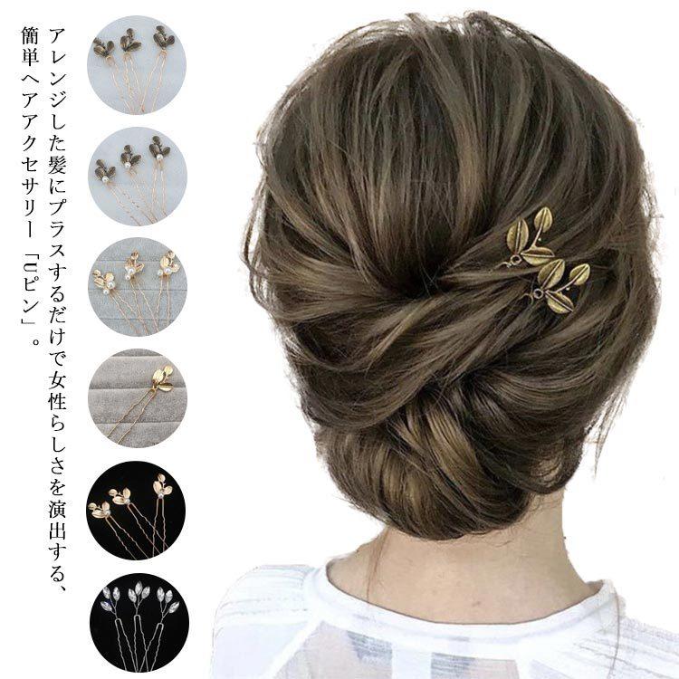 送料無料 Uピン パール 髪飾り ヘアアクセサリー リボン シルバー ゴールド キラキラ 簪 U字 かんざし ヘアピン 結婚式 入学式 卒業式 成人式