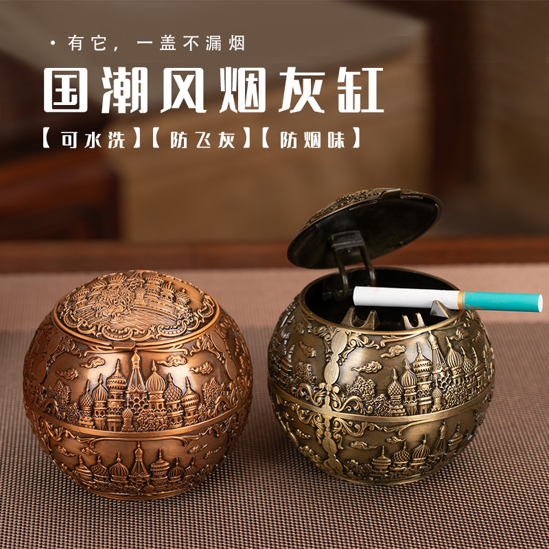轻奢中式烟灰缸创意个性潮流防飞灰烟味家用客厅大容量办公室摆件