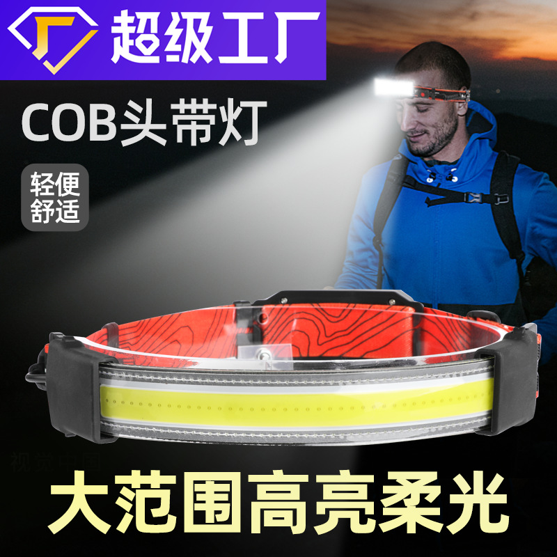 跨境新款COB头灯USB充电户外骑行探照灯尾部红光警示电显跑步矿灯