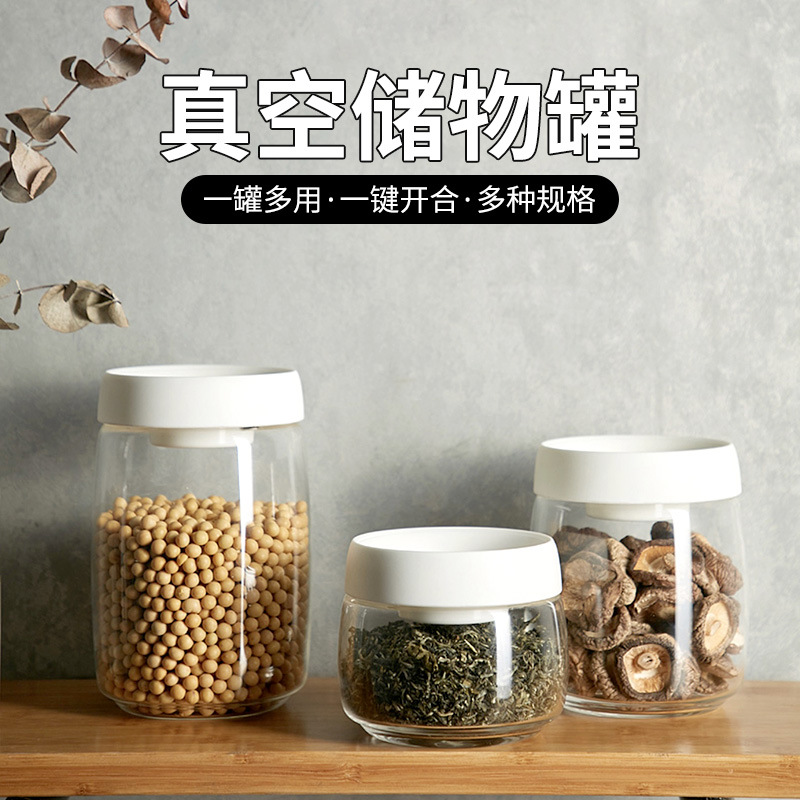 厂家高硼硅玻璃瓶密封真空罐定制竹盖茶叶罐透明玻璃储物罐糖果罐
