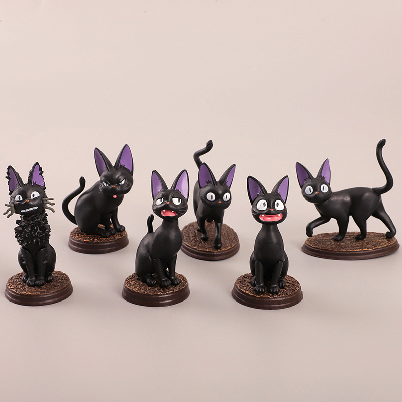 6 black cat figures, cartoons, kittens, dolls, toys, micro-landscape decorations around animation