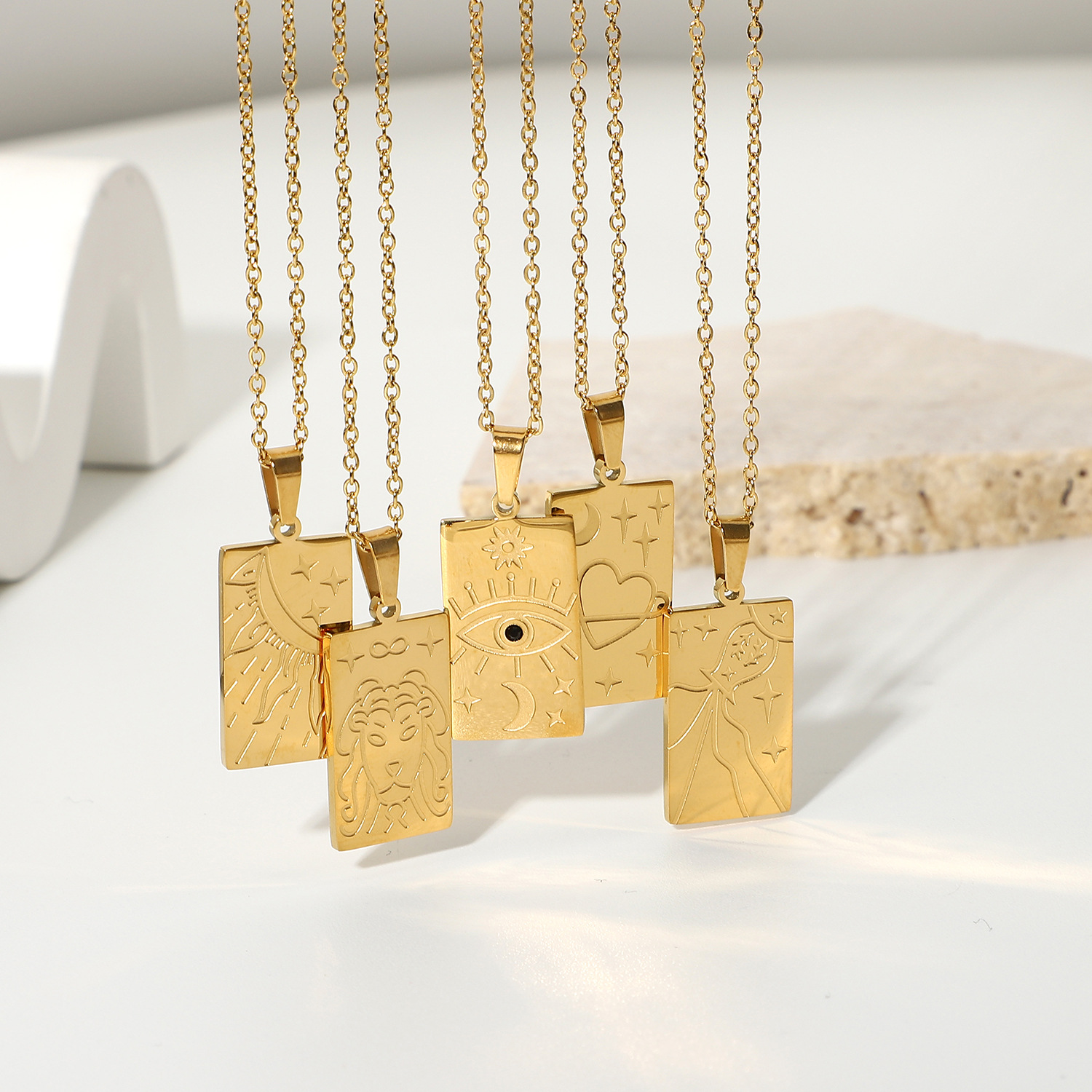 欧美INS网红同款金属项链18K不锈钢金色浮雕效果星星眼睛吊坠项链