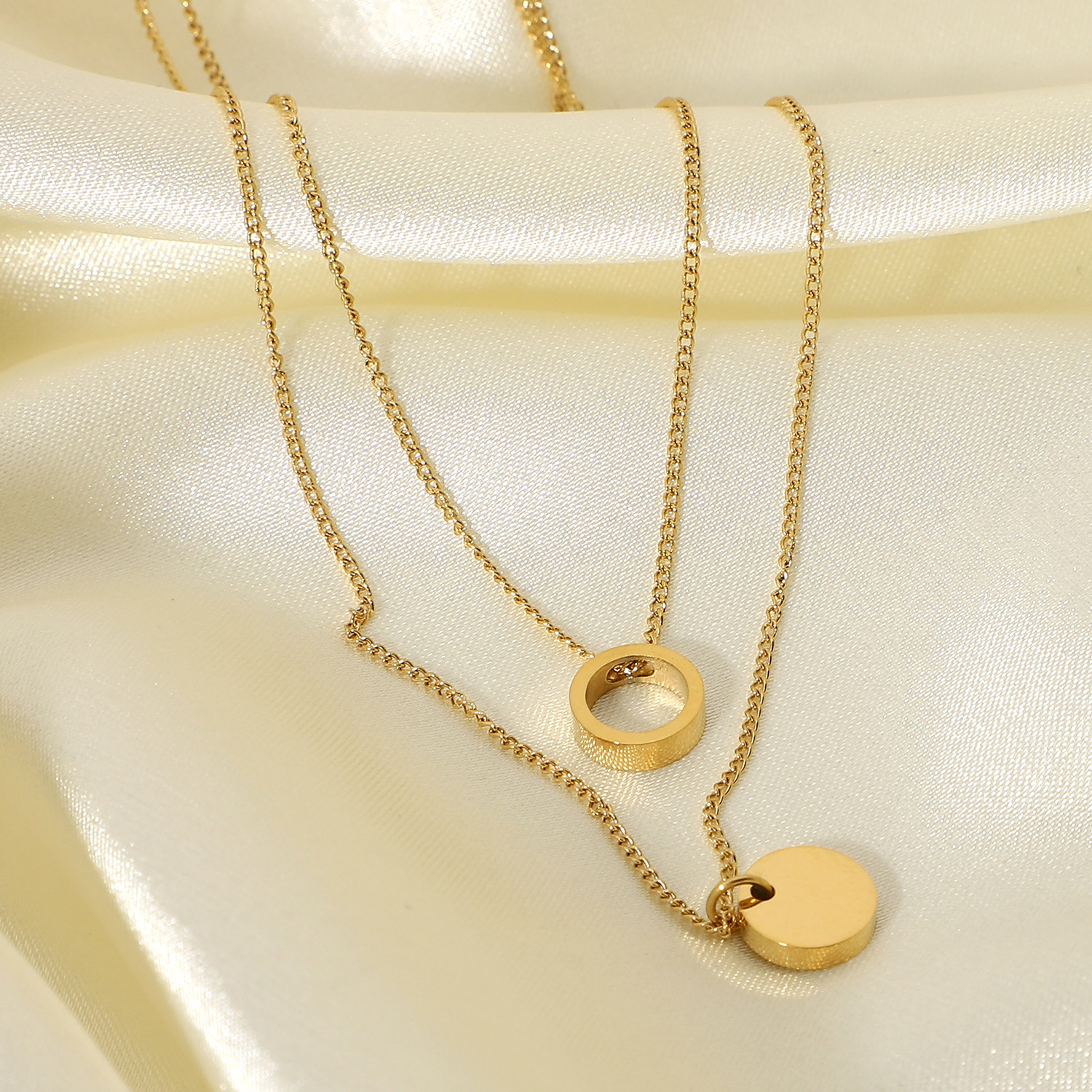 欧美INS网红不锈钢项链14K镀金不锈钢珠宝圆形戒指吊坠项链套装女